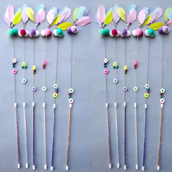 Colorful Feather Steel Wire Extended Cat Teasing Stick Bell Cat Teasing Pole Bite-resistant Long Pole Fairy Stick 1ps